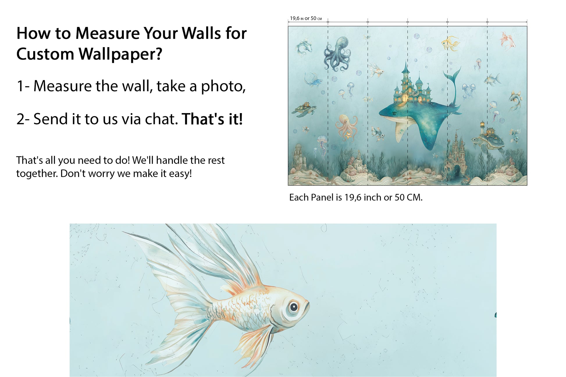 Measure your wall and share dimensions with us. We offer panels in 50cm and 100cm widths:
