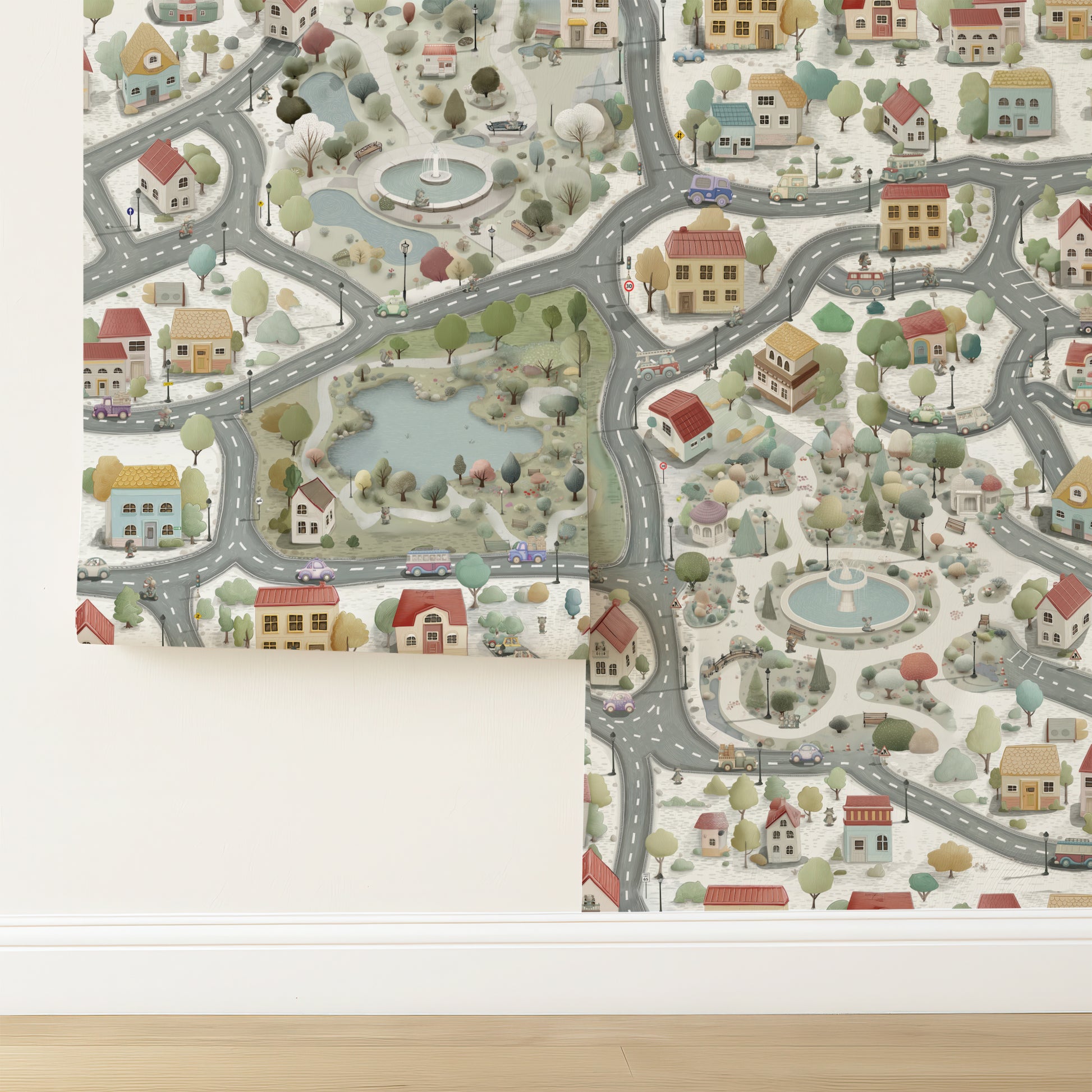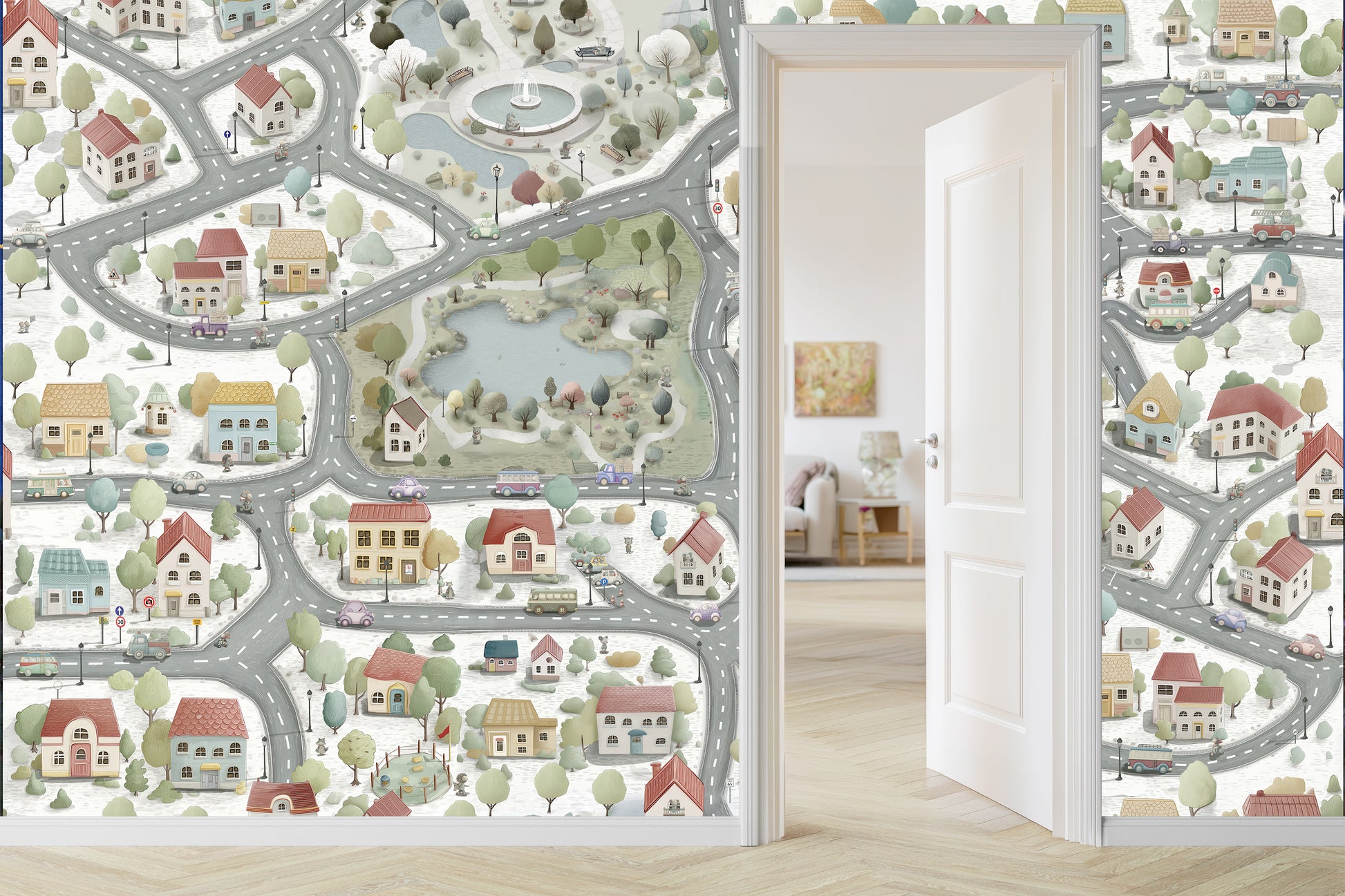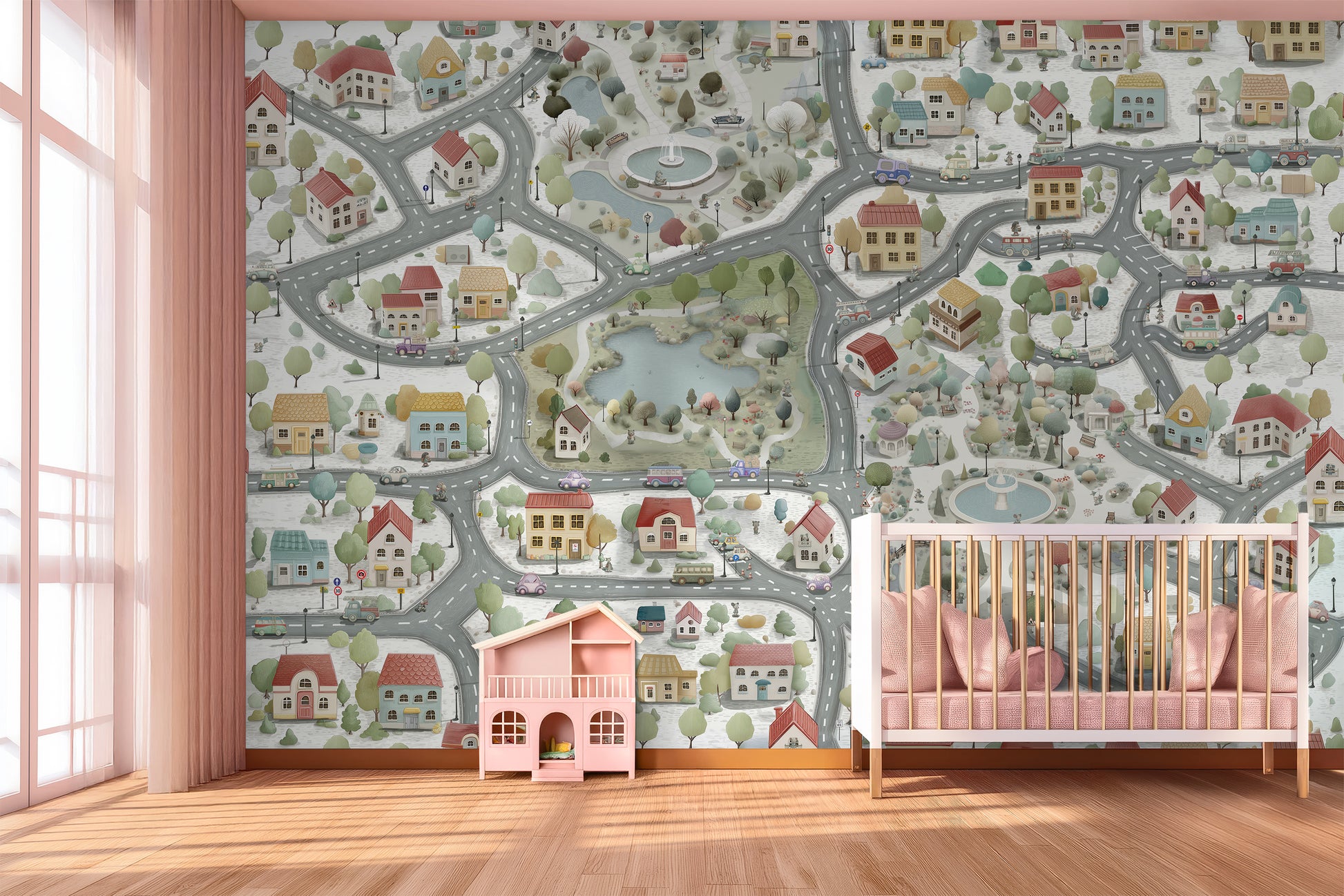 City Map Kids Wallpaper | Interactive Town Road Mural
